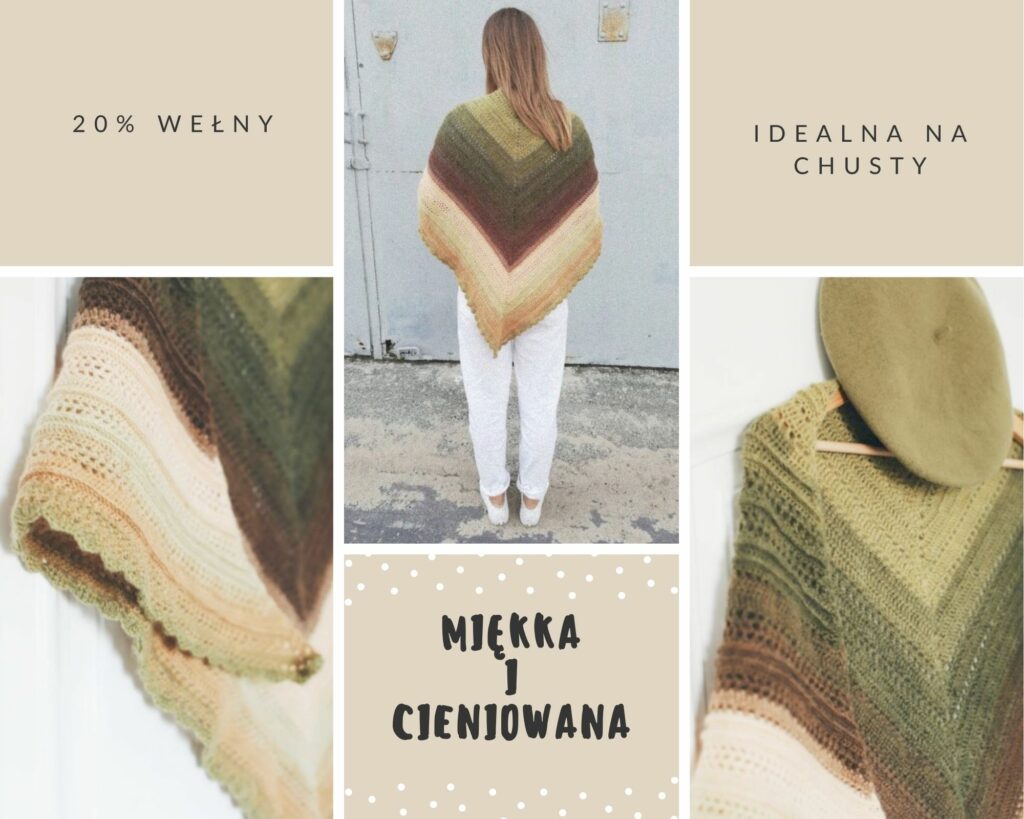 Warto również rozważyć wybór włóczki mieszanej, czyli takiej, która łączy w sobie cechy włókien naturalnych i syntetycznych. Dzięki temu uzyskujemy chustę o właściwościach zbliżonych do tych wykonanych z wełny, bawełny czy bambusa, ale jednocześnie trwalszą i łatwiejszą w pielęgnacji. Włóczki mieszane mogą zawierać różne proporcje włókien, dlatego warto dokładnie sprawdzić skład przed zakupem. Przykładem takiej włóczki może być mieszanka akrylu z wełną czy bawełną, która zapewni miękkość, ciepło i wytrzymałość chusty.