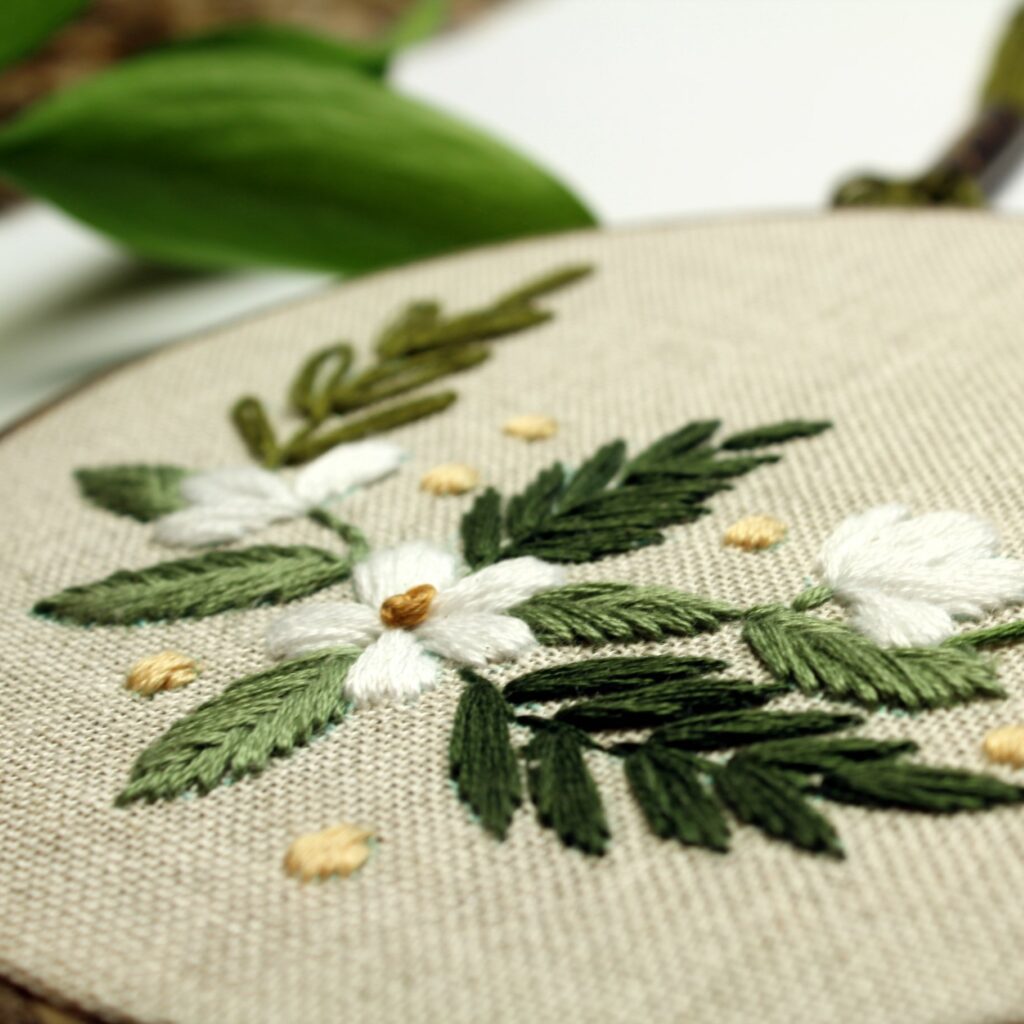 W niektórych zestawach występuje też filc, który służy do wykończenia tamborka.